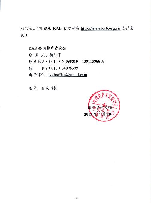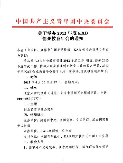 1、关于举办2013年度KAB创业教育年会的通知(下载)(原件下载 1 2 3)