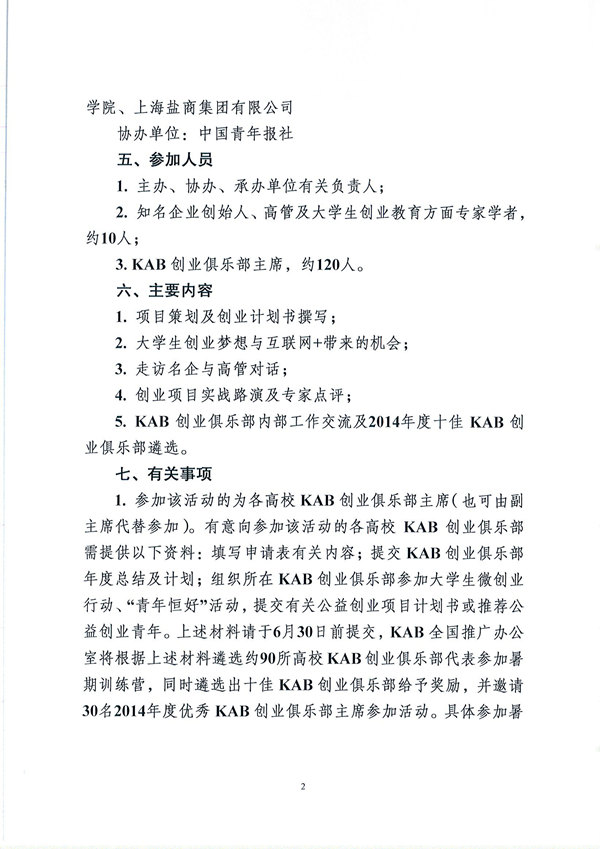 2.参加该活动的交通、食宿费用由KAB创业教育全国推广办公室负责。
