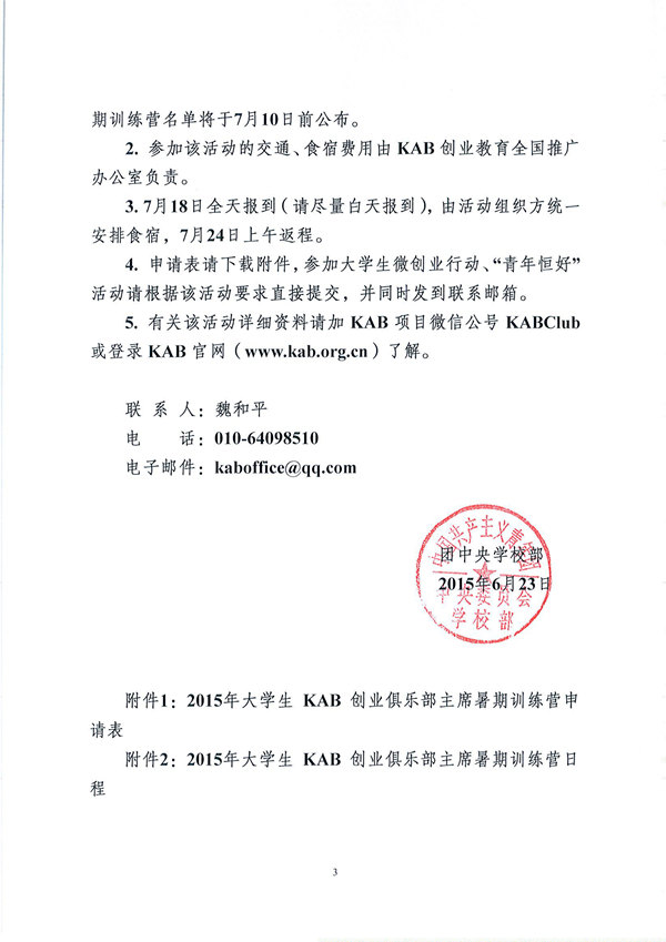 申请参加2015年大学生KAB创业俱乐部主席暑期训练营请下载申请表及日程