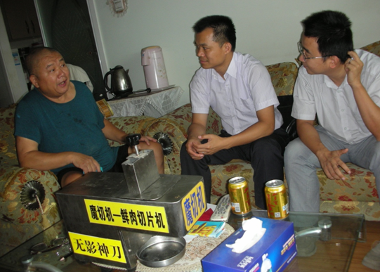 中青在线讯(刘爽)2015年8月25日,“创业正当时”青年创业大赛北京赛区组委会的工作人员邀请了清华大学叶左昌教授作为项目帮扶专家,驱车20余公里到达了帮扶计划的第一站——“魔切机”项目的负责人张宝全老先生家里。