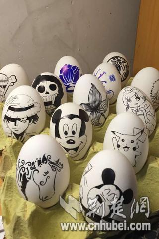 万事开头难。“先将鹅蛋洗净后晾干,3分钟内用防水油性笔在鹅蛋上画出图案,再静置在温水里浸泡20分钟。”考虑到有些家庭买来彩蛋可能会 食用,蒋青和王华清想了一系列办法。“浸泡后多余的油性颜料会被水稀释。待捞出晾干后,油性笔的颜色可以快速的吸附在鹅蛋表面,高温加热后又可以快速化 掉,不会出现鹅蛋染色不能食用和把玩掉色的问题。”蒋青坦言,为使彩蛋不仅好看,还能吃,自己一次性在王总手上购买了30枚鹅蛋,在宿舍反复做了多次试验。