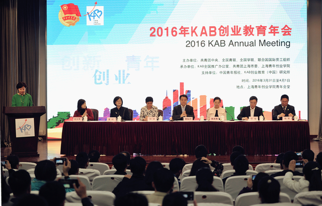 3月31日至4月1日在上海举行的2016年KAB创业教育年会上,来自全国KAB项目高校的400多名代表充分感受到了KAB的“魔力”。团中央书记处书记傅振邦出席活动,并为新增大学生KAB创业教育基地和新增“KAB创业俱乐部”高校授牌。团上海市委书记徐未晚出席并致辞。联合国国际劳工组织、团中央学校部、团上海市委学校部、上海青年创业学院等单位相关负责同志出席了活动。本报记者 李隽辉/摄