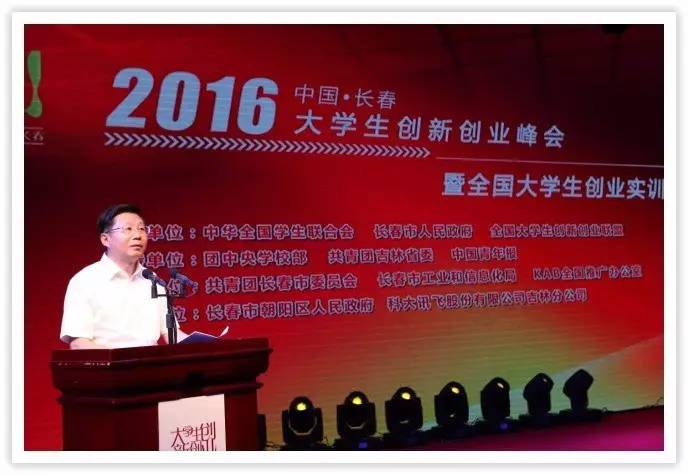 本报长春7月13日电(中国青年报·中青在线记者陈璐王培莲)今天下午,2016年大学生创业实训营开营仪式在吉林省长春市举行。该活动由共青团中央学校部、全国学联秘书处主办,全国大学生创新创业联盟、KAB全国推广办公室、共青团长春市委承办,支持单位为中国青年报社、长春市工业和信息化局、长春市朝阳区人民政府、科大讯飞股份有限公司吉林分公司。吉林省委常委、长春市委书记王君正出席会议,团中央书记处书记傅振邦、长春市委副书记杨子明参加活动并作讲话,来自全国167所高校的500名大学生创业者代表参加了活动。