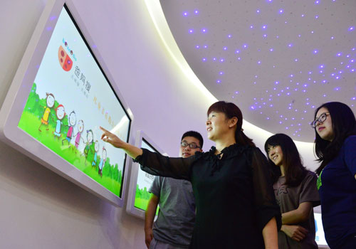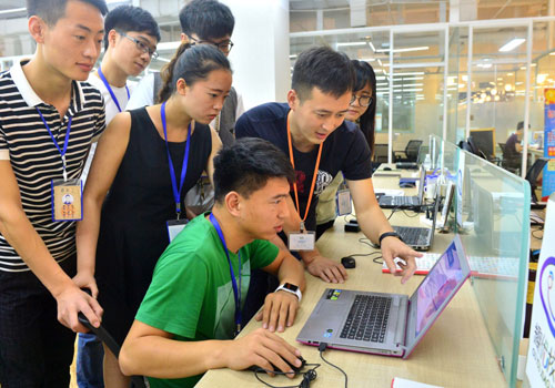 7月11日,在石家庄互联时空众创空间,客户体验青年创业团队研发的互联网软件。