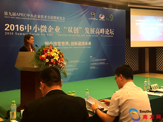 南方网讯 7月14日下午,2016中小微企业“双创”发展高峰论坛在深圳会展中心举行。作为第九届APEC中小企业技术交流暨展览会主论坛的平行论坛,以“创业改变世界,创新赢得未来”为主题,汇集了相关产研专家、中小微企业家代表、创新孵化器代表、创客空间代表、新三板创新型企业代表及金融投资界资深人士,共同探讨在“双创”背景下,如何进一步助力小微企业创新发展。