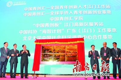 “中国青创汇”双创周启动仪式上,多个双创平台正式揭牌,江门稳步形成“大众创业、万众创新”的生动局面。全泽超 摄