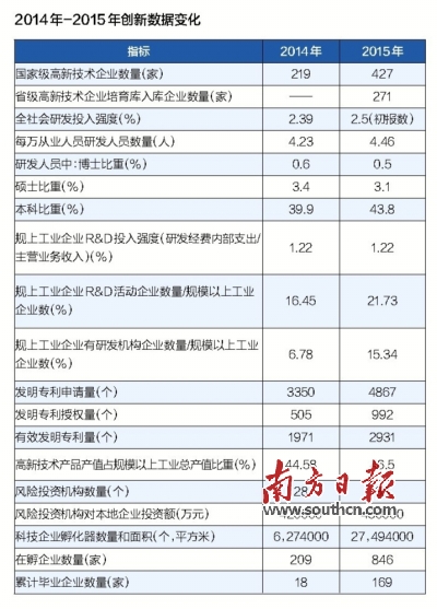 统计显示,去年该市国家级高新技术企业从2014年的219家增加至2015年的427家,增长近1倍,增速全省第一;市级以上新型研发机构从8家增加至24家,科技企业孵化器从11家增加至27家,增长均超过1倍;发明专利授权量从505件增加至992件,增长96.4%,成为国家知识产权示范城市,全国首家知识产权法院远程诉讼服务处落户中山市。