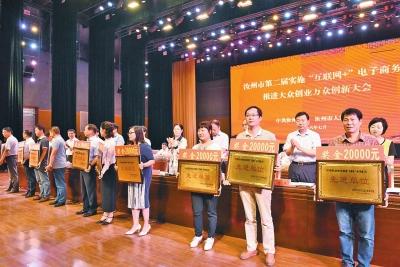 汝州市第二届实施“互联网 ”电子商务推进大众创业万众创新大会现场,创新创业者获奖。记者李春特约通讯员王国锋摄影