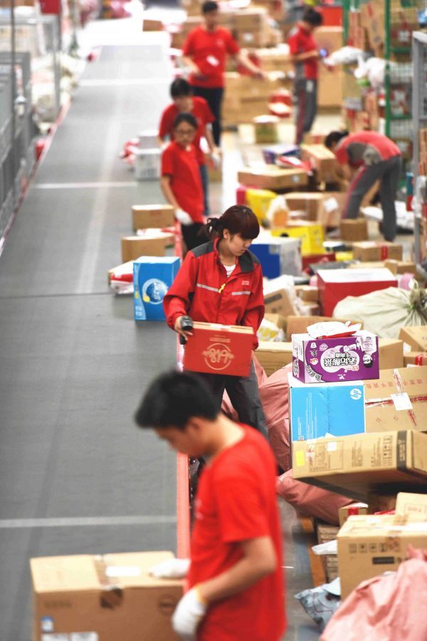 资料图:6月14日,工作人员在物流中心的分拣中心忙碌,迎接中国网购“狂欢日”。 新华社记者陈晔华摄