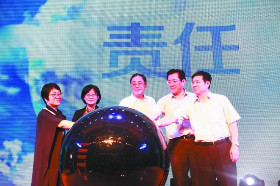 7月13日,寻访2016年大学生创业英雄启动仪式在吉林长春举办。图为广发证券股份有限公司党委书记、董事长孙树明,全国大学生创业创新联盟副理事长、中国青年报社副总编辑、KAB全国推广办公室董时、吉林省发改委巡视员姚素清、吉林省工信厅副厅长孙大维、长春市工信局局长郝晶祥等嘉宾共同启动。