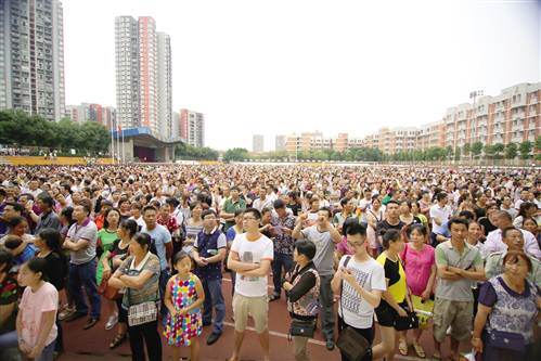 2016年巴川中学小升初面试,数万家长在操场焦急地等待。