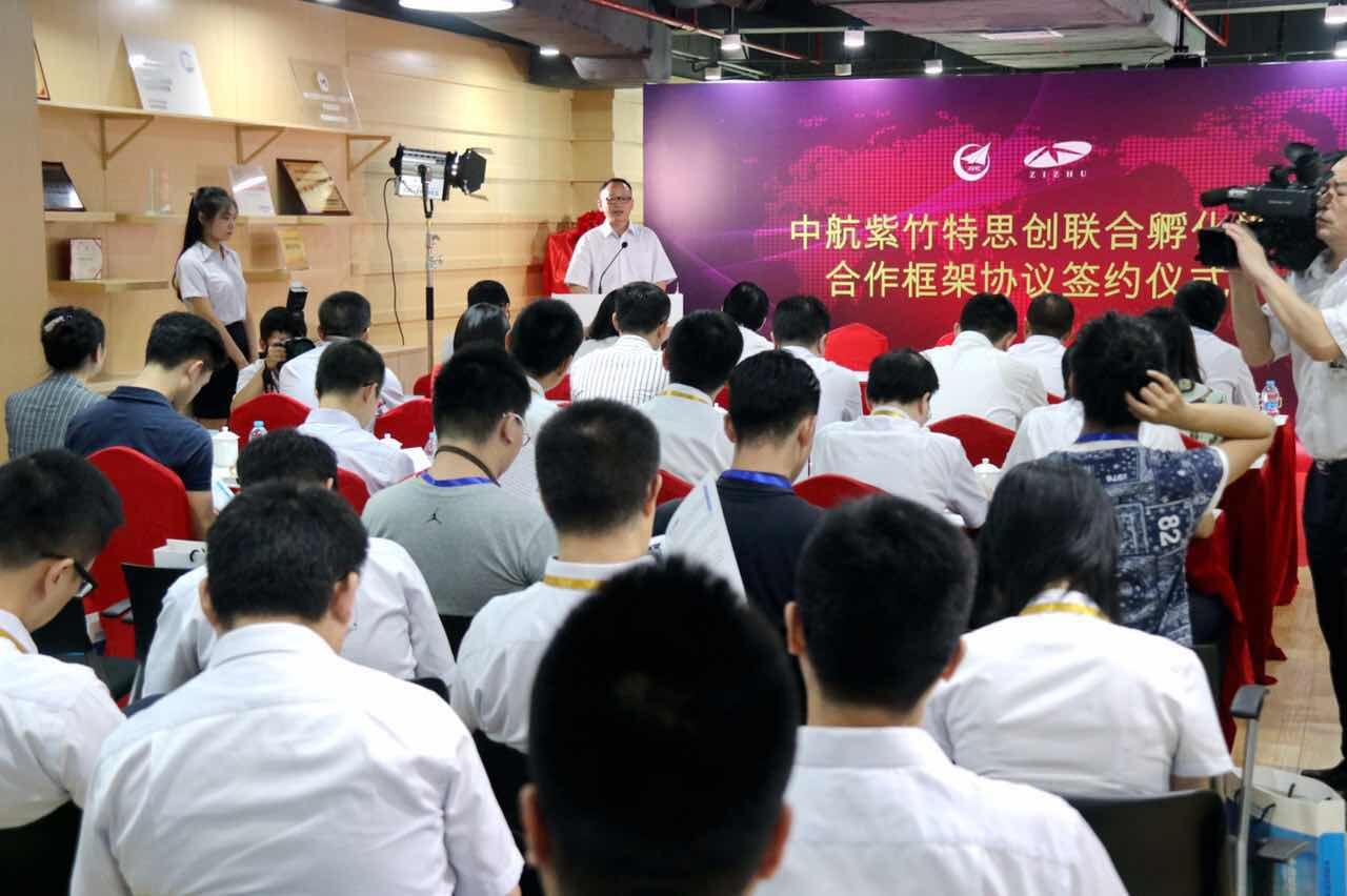 紫竹国家高新区常务副总经理夏光、上电所副所长习铮、中航民用副总经理金波,分别代表三方签署《中航紫竹特思创联合孵化器合作框架协议》。现场举行了简约庄重的联合孵化器和孵化器导师评审委员会揭牌仪式,吴斌副区长和上电所王金岩所长、李丽主任和夏光常务副总经理,分别为联合孵化器和孵化器导师评审委员会揭牌,仪式现场向6位技术导师和商业导师代表颁发聘书。