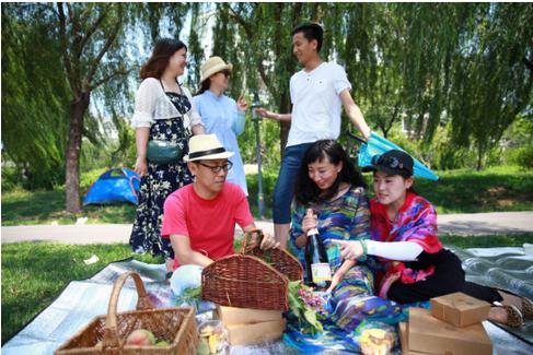 竹篮、水果、野花、红酒、各种美味的糕点……文艺青年们或惬意地席地而坐,或悠闲地调侃嬉闹,在长清湖畔的草地上,微风轻掠柳枝拂面而来,一群素昧平生的文艺青年因绘画而相聚,因艺术而结缘。他们突发奇想创新还原了法国画家莫奈的经典油画作品《草地上的午餐》,向艺术大师致敬。