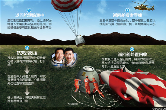 正如公众从电视画面里看到的那样,神舟十一号返回时,引导伞、减速伞、主伞相继打开,着陆反推发动机点火工作,返回舱着陆。这些动作只有一个目的,即让飞船返回舱温柔地拥入地球母亲怀抱,减轻着陆冲击对航天员健康以及航天器的损害。
