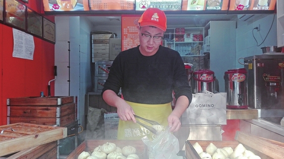 王沐宇的包子铺位于市中心,因为“干净、好吃、方便”,五谷杂粮包点成为很多年轻上班族的快餐首选。店铺“现做,现蒸,现卖”,全程公开了产品制作流程。包子从招牌的香菇鲜肉馅到传统的鲜汁肉馅,还有其他五谷杂粮制成的馒头等,虽然品种只有几个,却都很受欢迎,到了早上上班高峰期,排队来买包子的顾客络绎不绝,王沐宇几乎没有坐下来歇一会儿的时间。