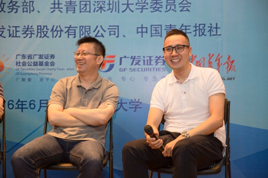 到大四毕业准备工作的时候,我发现潮汕人很多都在深圳,我最终还是要创业的,创业要重视商业圈和熟人,所以我就来到腾讯工作。在腾讯我很快找到了自己的方向,最终我们七八个在腾讯的同事一起离职出来创业。我说这一段经历,无非就是想告诉同学们,其实在学校里除了学到的知识之外,你要不断去探索身边能够利用的资源,尽你所能组建团队,也许你身边擦肩而过的人未来可能是你的创业伙伴。我们公司现在一百多人,来自我母校广东外语外贸大学的同学有30多人。每个人都是涓涓溪流,但是当你们的优势汇集到一块的时候,就是一个非常大的湖了,就能做一件改变社会、实现人生价值的事。