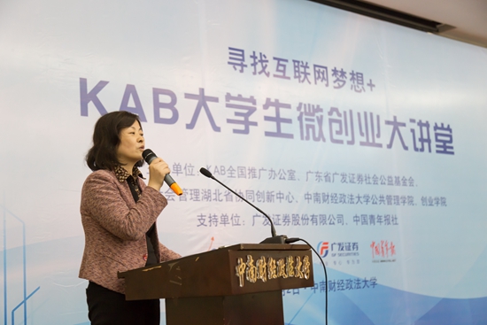 我觉得前面的小锻炼非常重要,不是一下子就成立一个大公司。从小做起,一步步迈向成功,这是大学生比较好的选择。特别是KAB创业教育对在校大学生的影响非常大,有利于大学生走向微创业,我希望大家多关注我们创业教育学院,多参加微创业计划比赛,多参加KAB的活动。