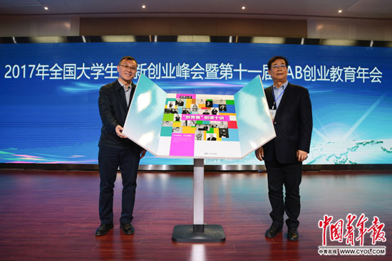 4月10日,河南省郑州市,2017年全国大学生创新创业峰会暨第十一届KAB创业教育年会,《“创青春”创课十讲》新书发布仪式。