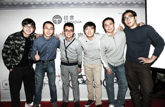 创始人陈腾蛟(左三)和杜磊(左二)等团队成员合影。杜磊确信,机动车普及,大中小城市里拥堵的问题日益严重,更绿色、轻便的交通方式必然出现。真正在自行车行业扎下根来,杜磊发现,最麻烦的,还是跟传统制造商打交道。